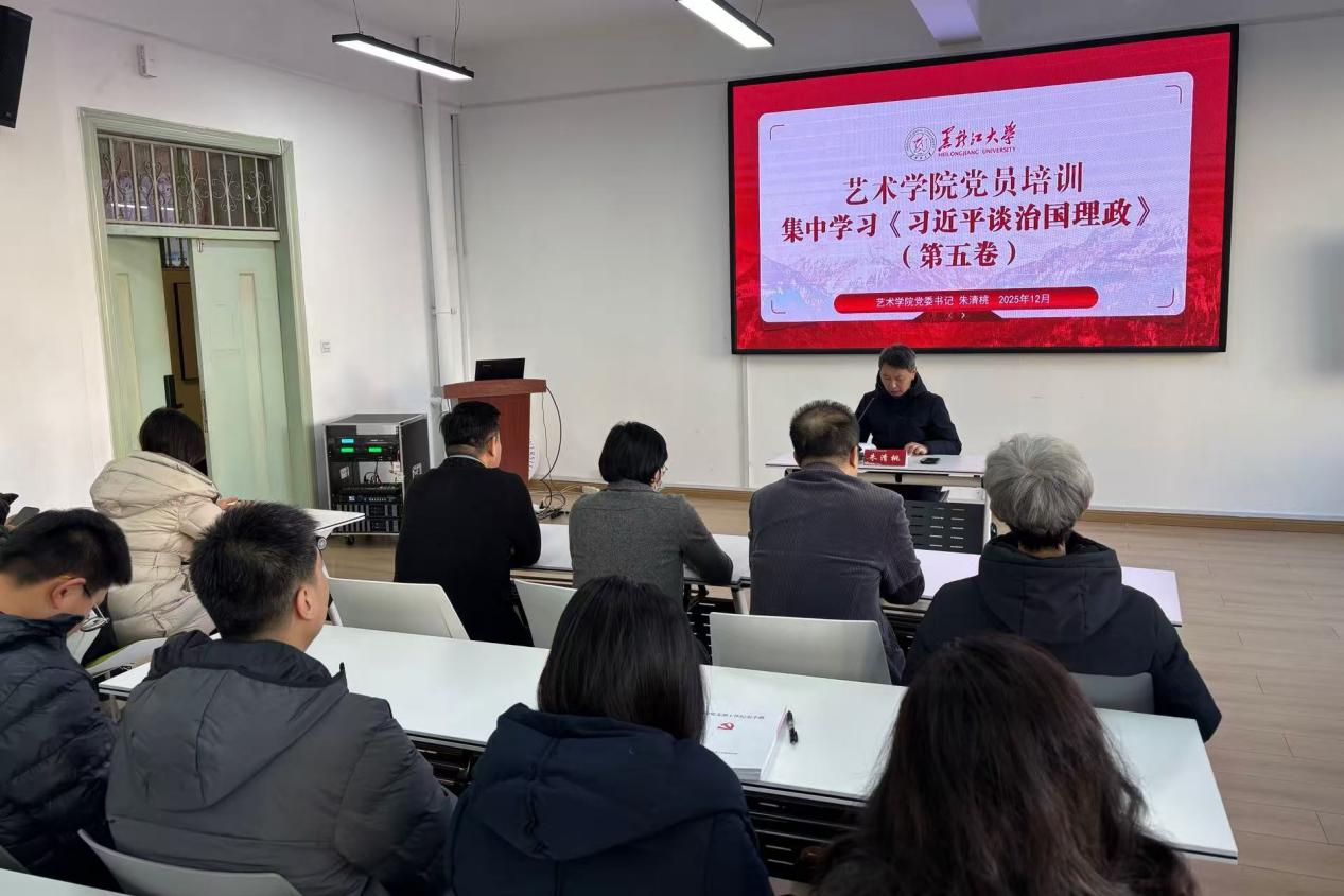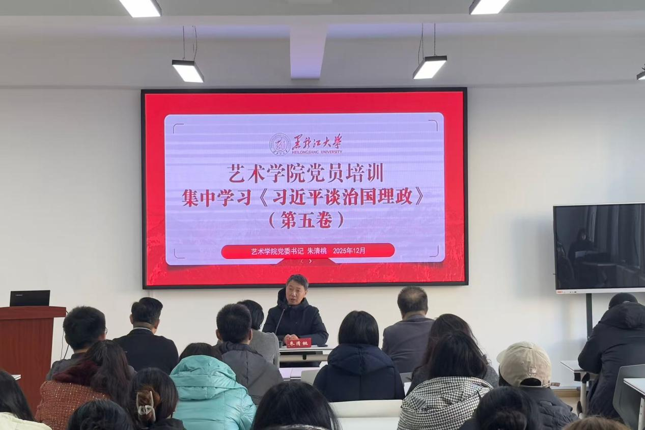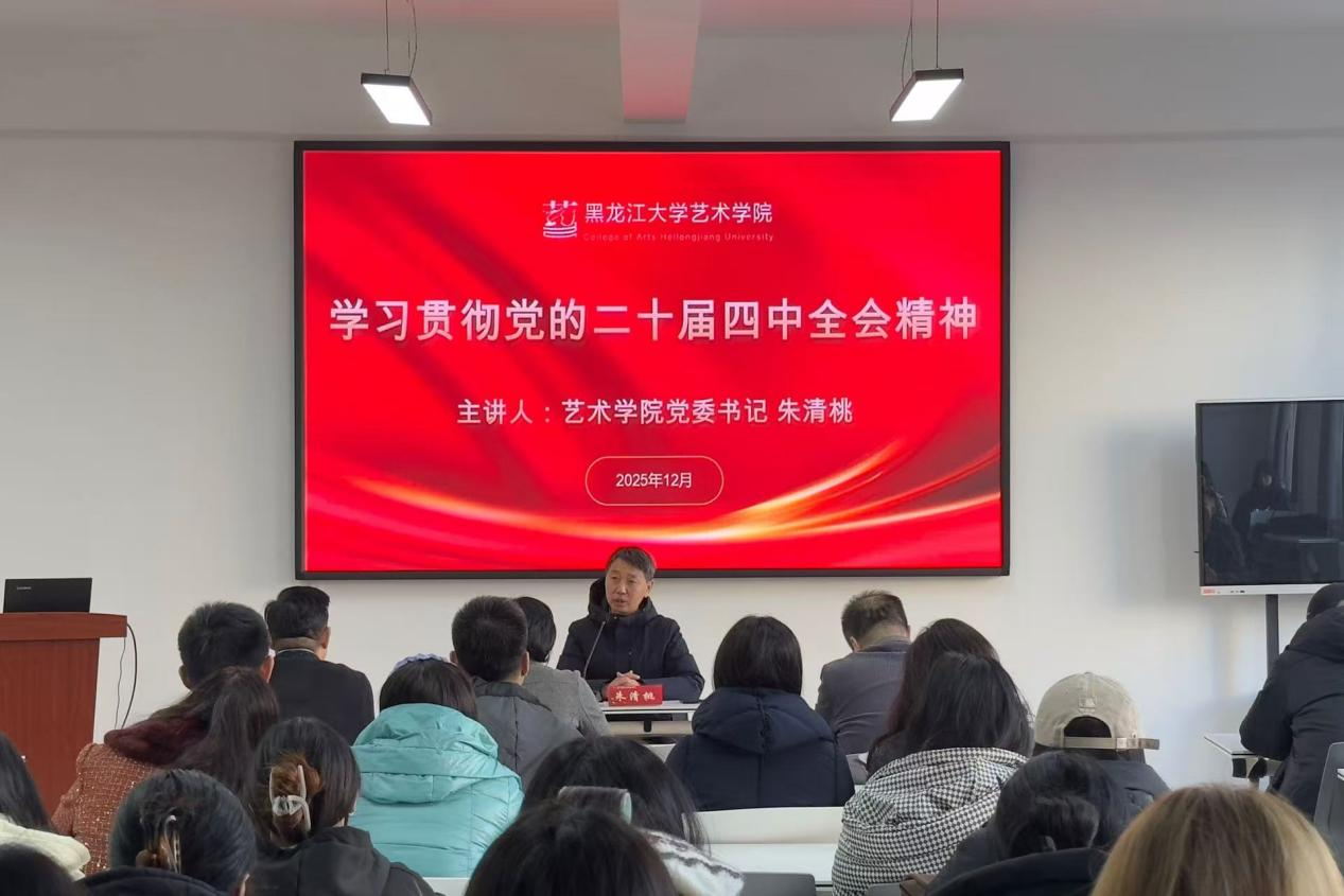 为持续推动党的创新理论学习走深走实,引导全院党员师生深刻领会新时代党的路线方针政策,巩固拓展主题教育成果,艺术学院党委于2025年12月12日下午14时举办了专题宣讲会,集中学习党的二十届四中全会精神和《习近平谈治国理政》第五卷。学院党委书记朱清桃担任主讲人,为学院全体党员师生作专题宣讲。