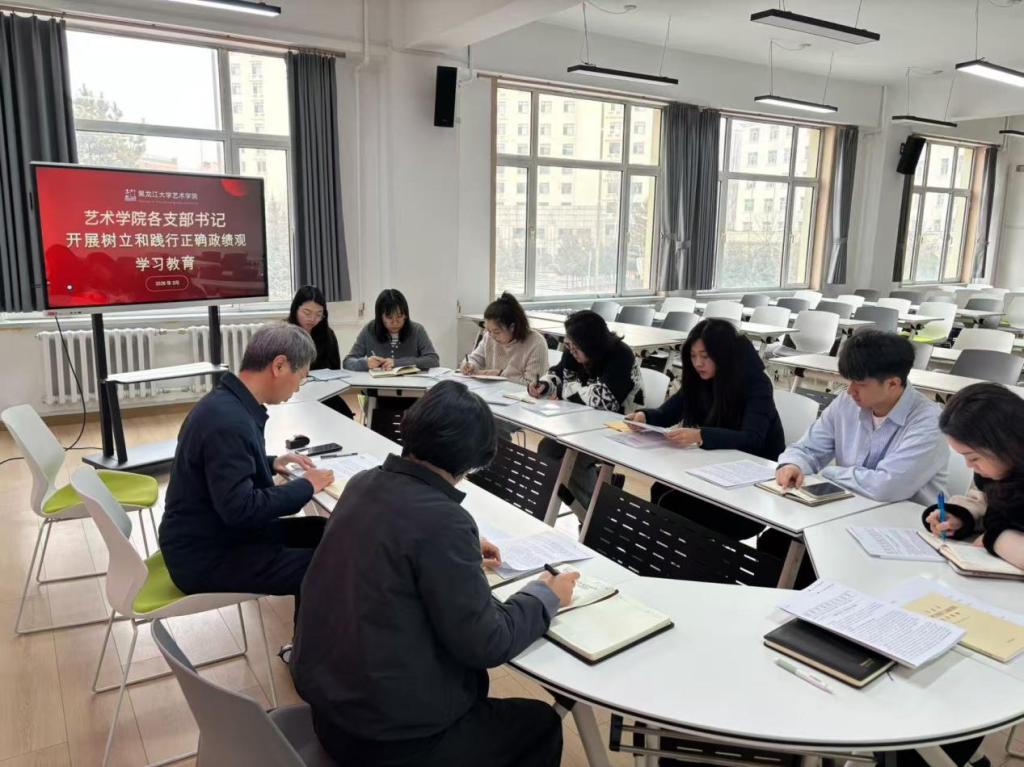 在学院党委层面,党委书记朱清桃带领党委委员集体学习了深入学习贯彻习近平总书记关于树立和践行正确政绩观的重要论述,学习《关于在全党开展树立和践行正确政绩观学习教育的通知》等文件和工作提示要求。党委委员结合自身工作实际,围绕“什么是正确政绩观、怎样树立和践行正确政绩观”开展初步交流研讨,进一步深化思想认识。朱清桃强调要把正确政绩观要求贯穿学院发展全过程,牢牢把握艺术教育立德树人根本任务,不搞脱离实际的“形象工程”,把工作重心放在服务师生成长、推动学科发展上。