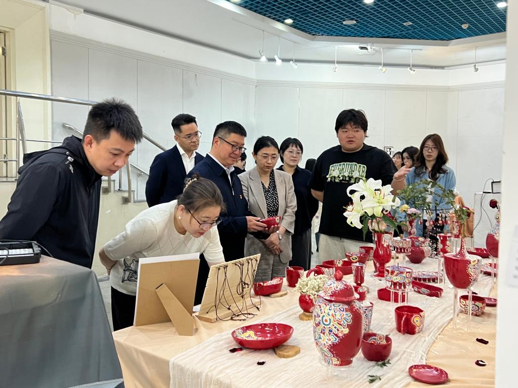会后,哈尔滨医科大学附属第一医院一行参观艺术学院2025届毕业生毕业设计展,走访了解艺术学院招生宣传、“三下乡”社会实践、职业生涯规划教育情况,双方就进一步加强交流合作,围绕“五育融合”搭建思想政治教育交流平台,创新思政教育工作制度机制,进行了深入交流探讨。