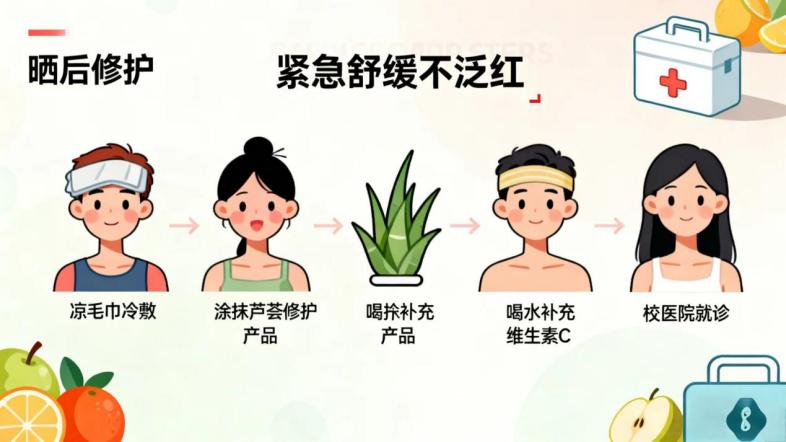 4. 若出现严重红斑、水泡或刺痛难忍,及时去校医院就诊,别自行用药。