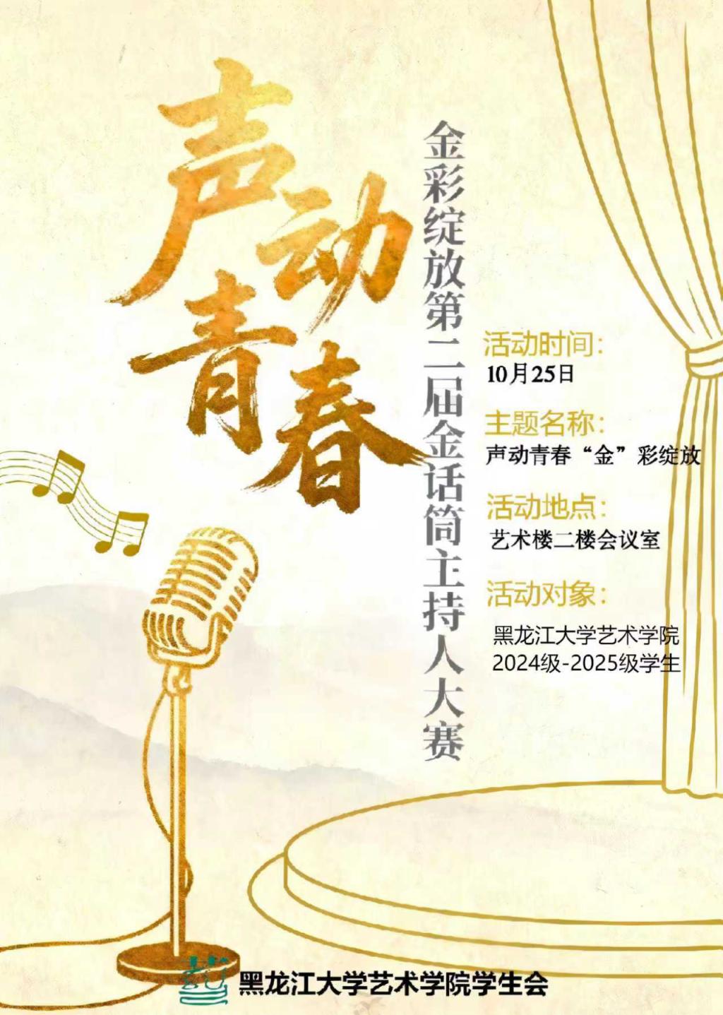 青春的舞台,从不缺少故事,却需要声音赋予灵魂。为发掘校园里的“金话筒”,搭建展现语言魅力与主持风采的平台,现举办声动青春,“金”彩绽放第二届金话筒主持人大赛。这里不仅是技巧的比拼,更是热爱的表达——无论是新闻播报的严谨、还是情感独白的细腻,都能在此找到绽放的土壤,让每一份对声音的执着,都成为青春最耀眼的“金”色印记。现将具体事宜通知如下: