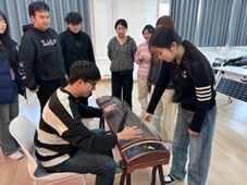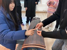 集中讲解结束后,教学团队即刻分组下沉,耐心观察同学们的指法动作,手把手纠正偏差,细致解答 “如何控制力度”“怎样找准音位” 等疑问,用专业的素养和亲切的态度,让每位参与者都能在实践中逐步掌握弹奏技巧。从最初的生疏试探到后来的流畅拨弦,同学们在一次次练习中感受着古筝的韵味,脸上洋溢着收获的喜悦。