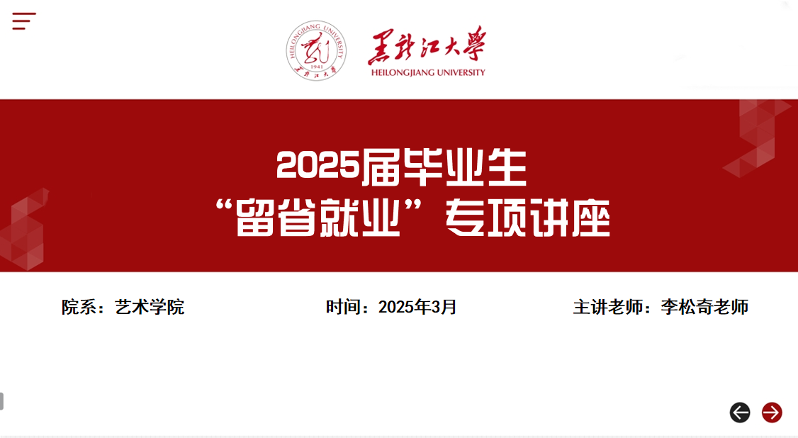 黑龙江大学艺术学院2025届“留省就业”毕业生就业专项讲座
